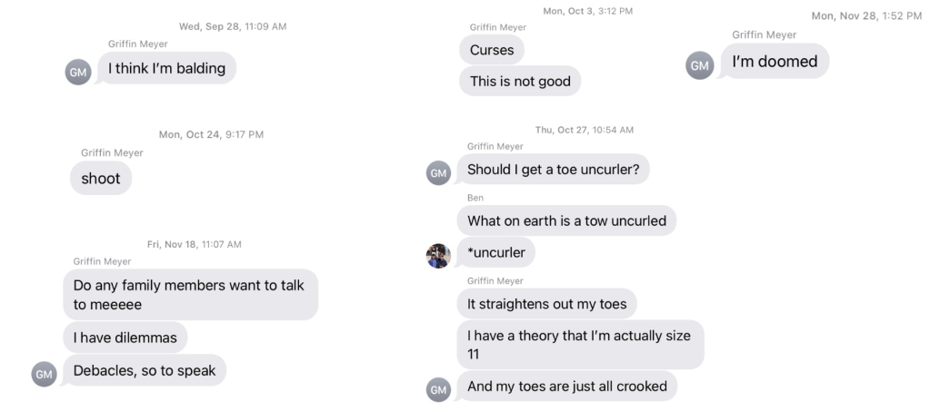 Griffin seems to have more time. And pings the family chat with a uniquely Griffin flair: